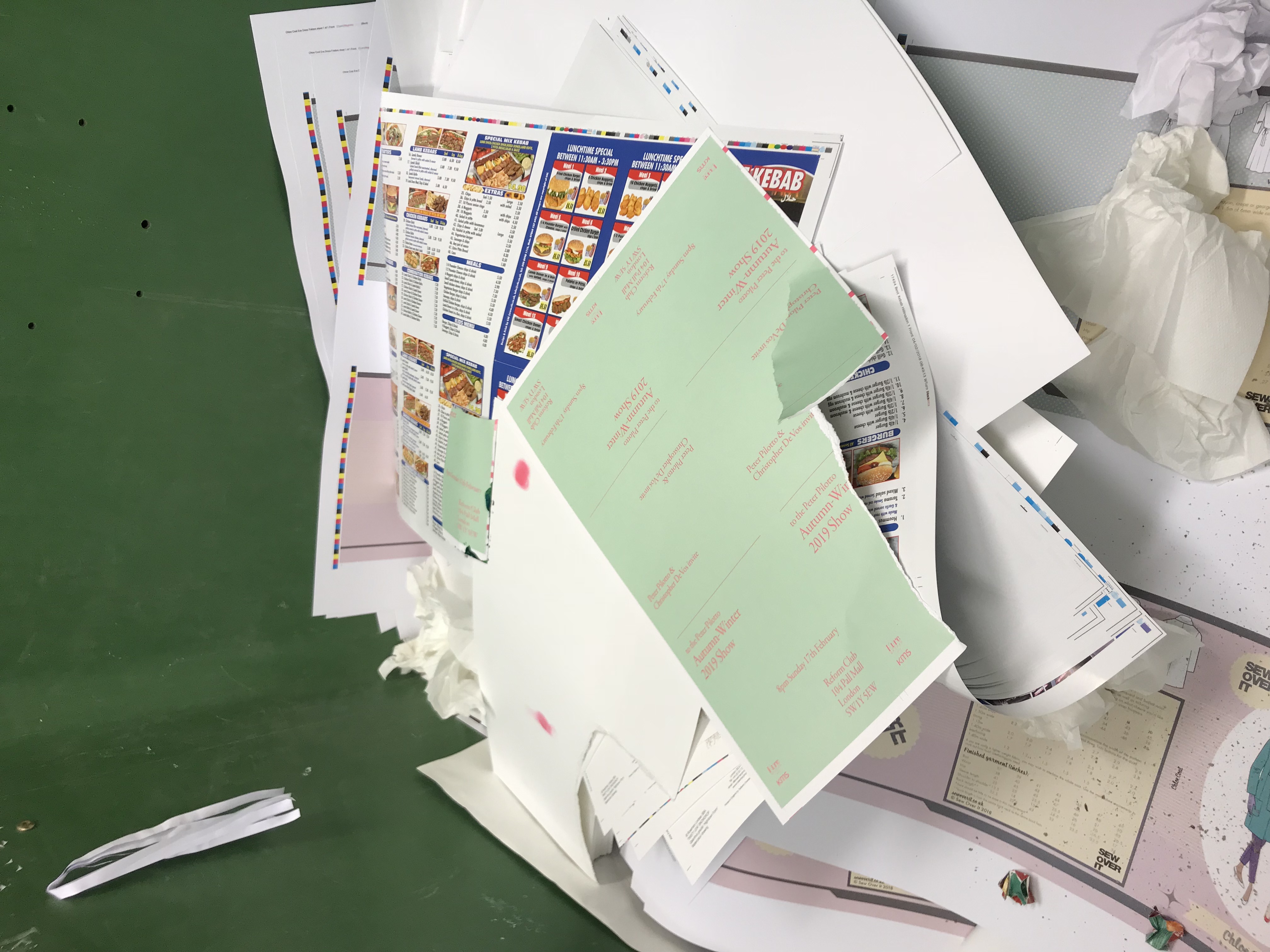 Some behind the scenes I took of the show. plus the pistachio press releases I designed on all the stools and chairs.